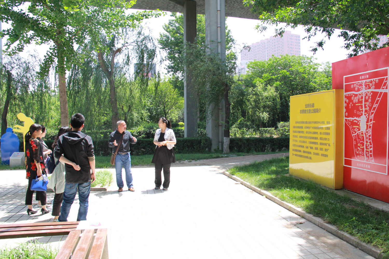 第三,纲要党支部一行5人实地参观了北坦街道党建的品牌产品——志愿者主题公园,对北关社区志愿者服务活动的开展情况进行深入调研。
