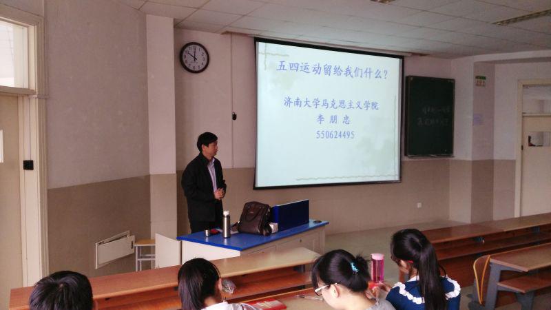 入党积极分子做《五四运动给我们带来什么》的专题讲座。李老师主要从五四运动的历史、五四运动带给我们的两个思考、如何看待五四运动的现实意义等几个方面展开讲述。在报告过程中,李朋忠老师还就目前中国发展过程中存在的一些问题,表达了自己的观点,他表示,同学们要理论联系实际,不断深化自身认识,促进个人政治思想觉悟的提高,做一个“有理想、善学习、讲道德、要自立、勇奋斗” 的时代青年。