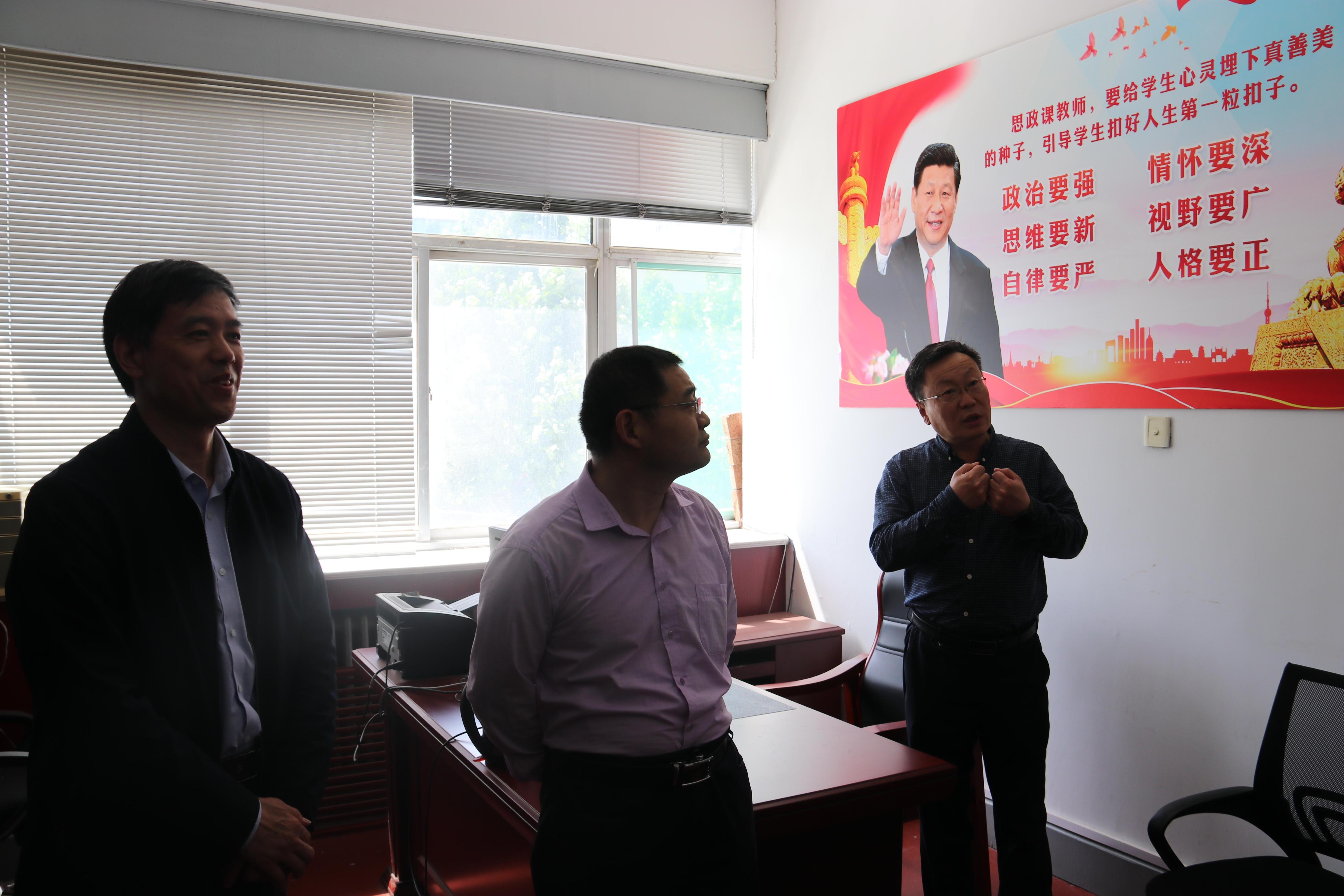 5月24日,为深化学校思政课改革创新,校长张士强来到51吃瓜实地调研。张校长首先察看了省思政课教学名师“李朋忠工作室”和“杨立志工作室”建设情况。然后召开了思政课建设座谈会。党委办公室、校长办公室、党委宣传部、马克思主义学部、党委教师工作部、教务处、51吃瓜