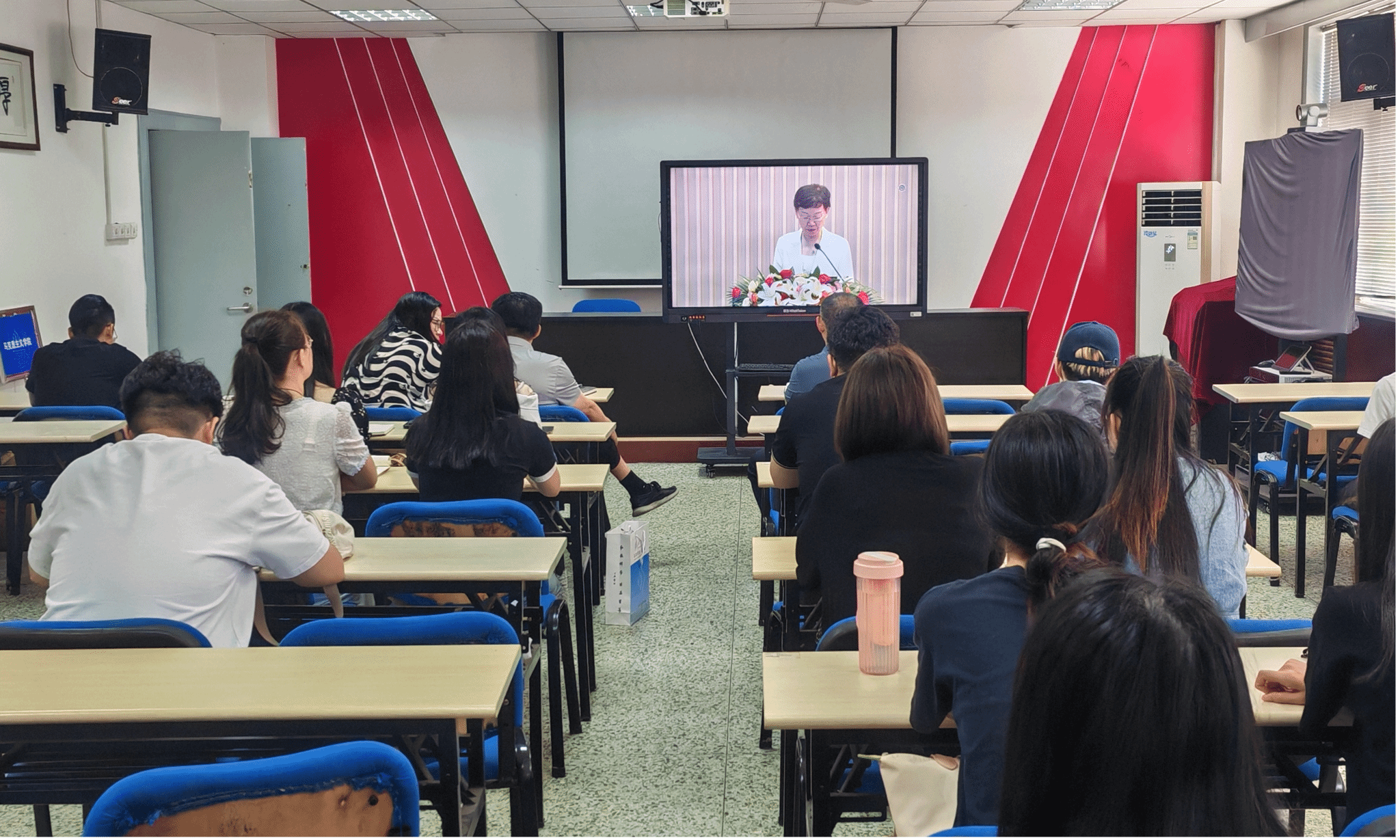书记刘颖超、副院长杨立志与师生一同观看。