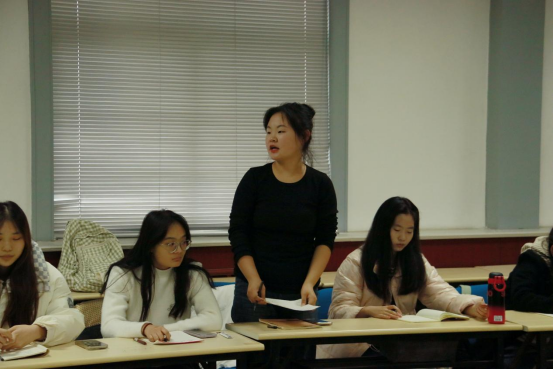 辅导员赵朔与同学们一同听课。本次授课还特别邀请到了思想政治教育专业2018级毕业生王淑杰同学进行经验分享。