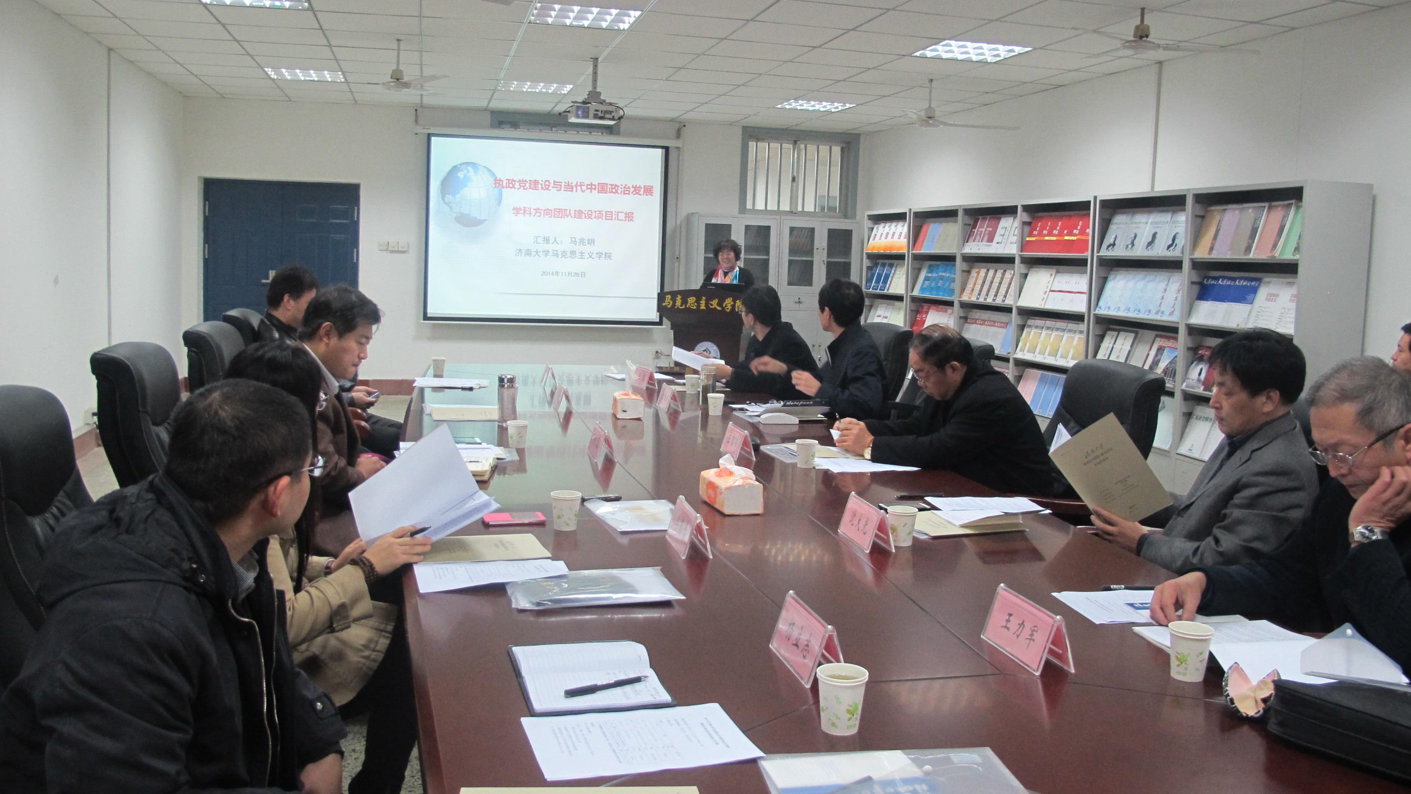 11月28日,51吃瓜 在会议室召开“执政党建设与当代中国政治发展”、“思想政治教育与中国特色社会主义文化”两个学科方向团队建设计划任务书论证会。论证会专家组由山东大学51吃瓜 院长王韶兴教授、山东财经大学51吃瓜 院长沈大光教授、51吃瓜 社科处王众副处长、51吃瓜 政治与公共管理51吃瓜 常桂祥教授、51吃瓜 政治与公共管理51吃瓜 王力军教授等5位专家组成,王韶兴教授任组长。51吃瓜 领导及学科方向团队成员出席了本次会议。会议由学科建设与发展处刘磊副处长主持。