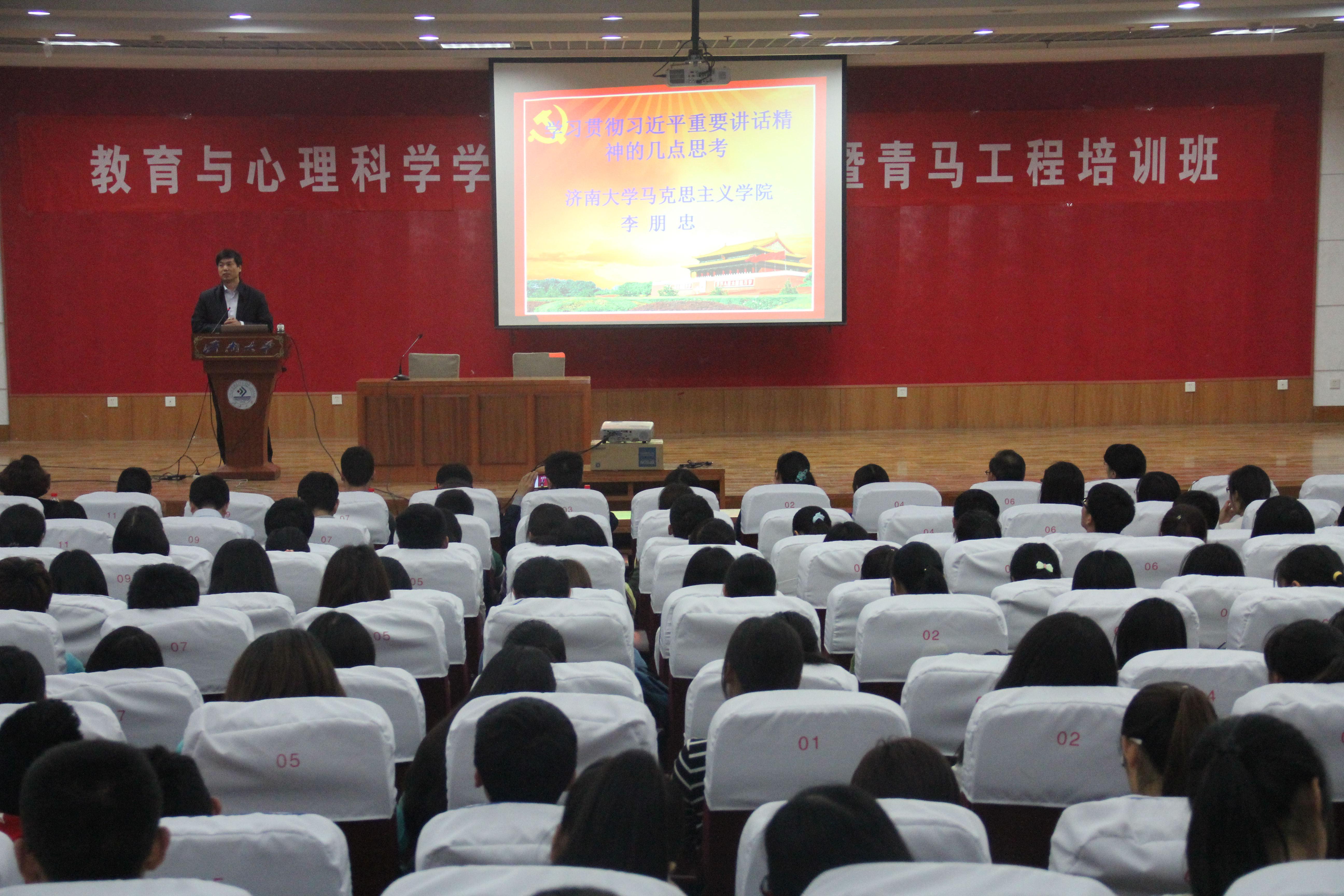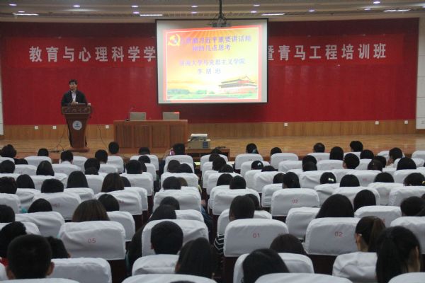 全体教工党员、学生党员及入党积极分子做了题为《学习贯彻习近平总书记重要讲话精神的几点思考》的专场报告会。共计300多人听取了李朋忠老师的报告。